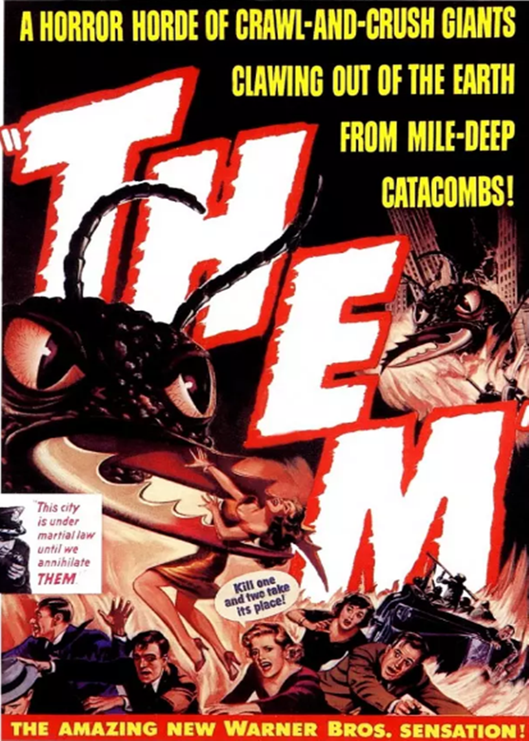 人类因掌握原子技术而一举跃入科技新纪ccc。然而没有想到的是,人们在创造新技术的同时,也创造了"它们"!1954年的影片《X放射线》无疑是电影史上的一个里程碑,这部讲述受到放射线污染的蚂蚁变异成为巨型怪兽故事的影片,凭借其在特效方面的出色表现获得了奥斯卡最佳特效奖提名。本片由詹姆斯•惠特莫尔、詹姆斯•阿内斯以及埃德蒙•格温主演,故事开始于新墨西哥州一家遭不明生物袭击的杂货店内,一个孩子面对店中的景象以及一具被压得面目全非的尸体目瞪口呆,而这尸体内竟然充斥着足以毒死20个成人的蚁酸!最终,在洛杉矶地下长达700英里的暴雨下水道中,蚁兽群被一举歼灭。可是人类并未取得真正的胜利,因为蚁兽早已产下成批待孵化的虫卵……或许你曾看过一些有着相似恐怖效果的影片,但《X放射线》在艺术造型上的成功却是绝大多数类似影片所无法匹敌的。